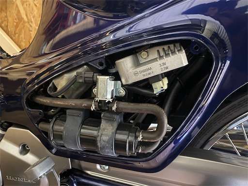 その頃はミラーのステーにスマホホルダーを付けていたので、そこからスマホの充電をしやすい位置という事でレッグシールド加工をしました。