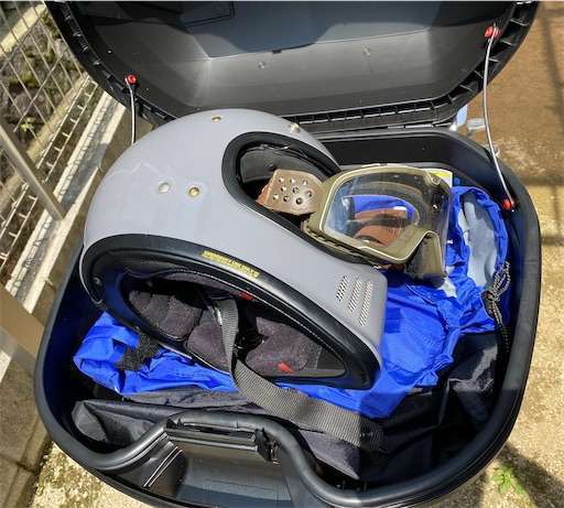 しかしフルフェイスとカッパを入れようと思うと厳しいかな。